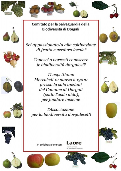Il Comitato per la Salvaguardia della Biodiversità di Dorgali organizza in collaborazione con Laore, Agenzia Regionale per lo Sviluppo in Agricoltura, un incontro aperto a tutti i cittadini per fondare l'Associazione per la Biodiversità Dorgalese ed organizzare le attività del 2014.