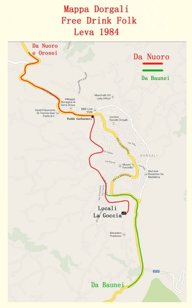 La nottata inizierà sabato 25 gennaio alle ore 22 nei locali "La Goccia" a Dorgali (a seguire la mappa), il biglietto partecipazione - maschi 20,00 €, femmine 15,00 € e bambini dai 0 ai 12 anni gratis - comprende bevande alcoliche e analcoliche oltre che un buffet di prodotti locali previsto a mezzanotte.