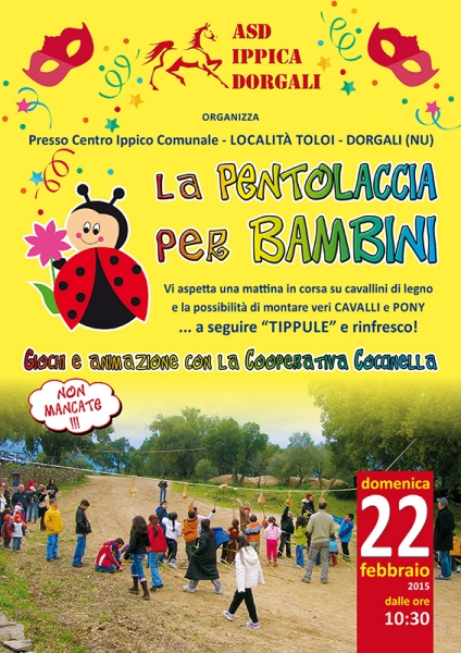 L'ASD Ippica Dorgali organizza "La Pentolaccia per Bambini", l'appuntamento è domenica 22 febbraio dalle ore 10:30 al Centro Ippico Comunale in Località Toloi a Dorgali.