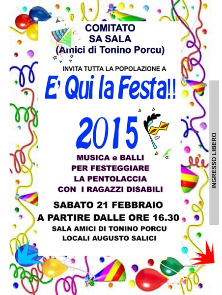 Per chiudere in bellezza il Carnevale i ragazzi disabili provenienti anche da Galtelli, Irgoli, Loculi, Orosei e Onifai saranno protagonisti di una festa speciale all'insegna della musica, dei balli con tanti dolci e premiazioni delle mascherine più belle.