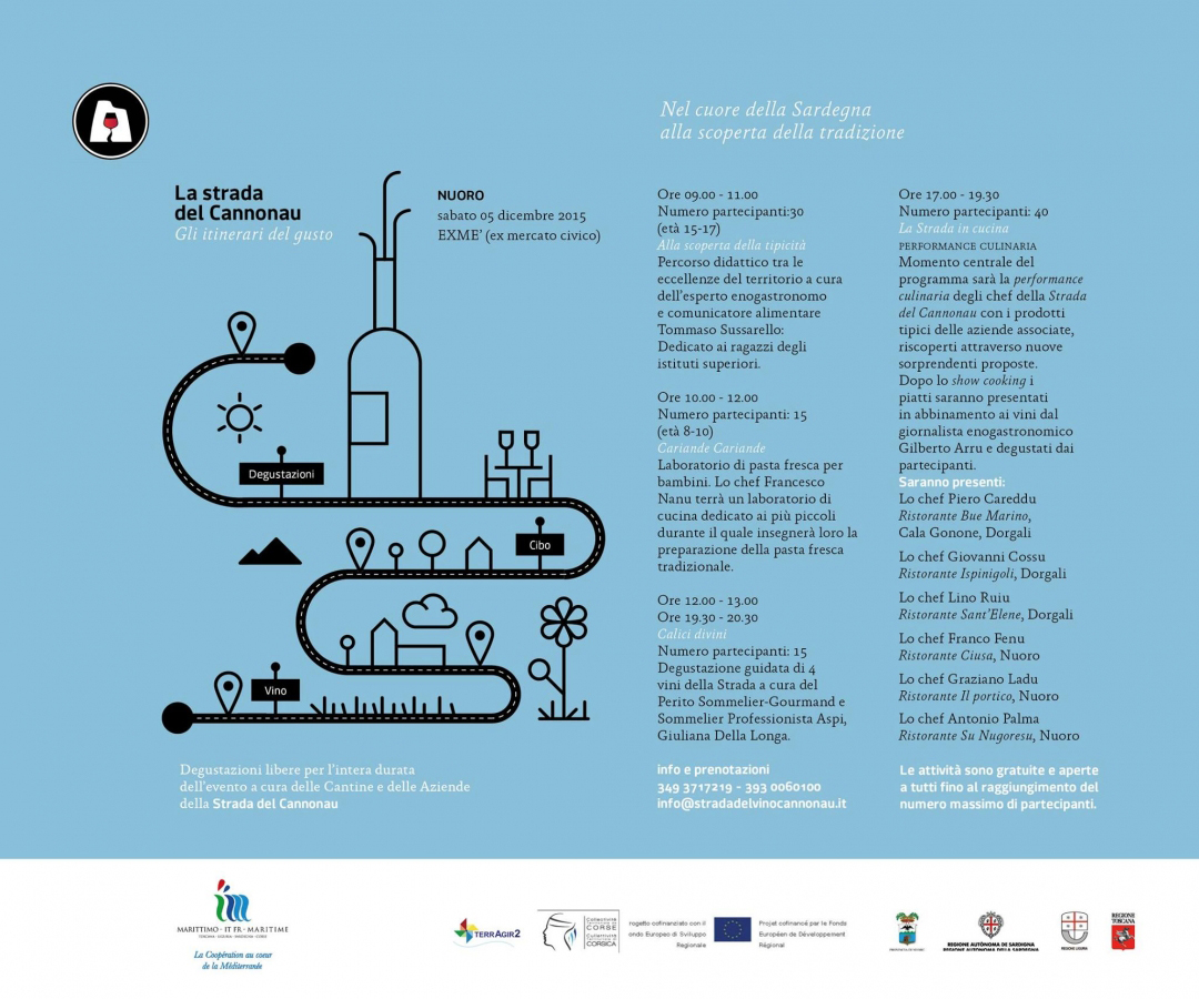 Oltre alle degustazioni libere per l'intera giornata della manifestazione, il programma "Gli itinerari del gusto", prevede diverse attività per adulti e ragazzi. Si inizia alle ore 9 con un percorso didattico tra le eccellenze del territorio dedicato ai ragazzi degli istituti superiori e curato dall'esperto enogastronomo e comunicatore alimentare Tommaso Sussarello. Alle ore 10, lo chef Francesco Nanu curerà un laboratorio di cucina dedicato ai più piccoli, durante il quale insegnerà loro la preparazione della pasta fresca tradizionale.