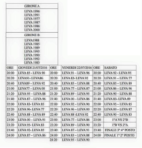 Inizia questa sera il tradizionale "Torneo delle Leve - Calcio a 5" organizzato dalla Leva 1986 che quest'anno costituisce l'Associazione San Giuseppe.