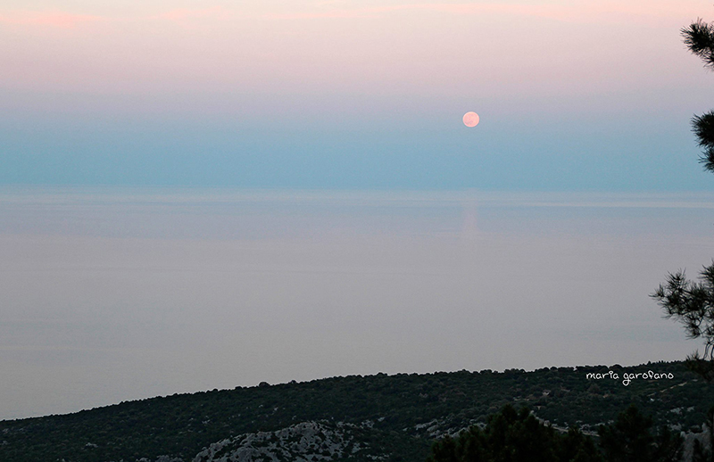 Ieri sera anche la linea dell'orizzonte nella costa di Cala Gonone si è tinta di una leggera sfumatura rosa grazie alla Luna e ad un fenomeno che avviene ogni anno a causa di una serie di correlazioni e fenomeni come la posizione della luna rispetto all’atmosfera terrestre e la calura estiva.