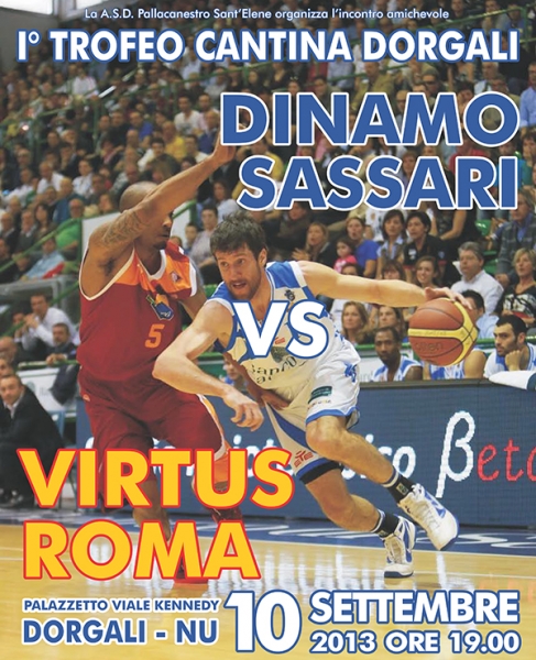 L'avversario & Co. La Virtus Roma dopo la finale scudetto della passata stagione si affida per il 2013/2014 alla guida di coach Luca Dalmonte. Riconfermati il duo di playmaker Jordan Taylor-Lorenzo D'Ercole, la guardia Phil Goss, il lungo Bobby Jones e capitan Tonolli alla sua 20^ stagione in maglia giallorossa. Completano il roster l'ex Dinamo Quinton Hosley i pivot Trevor Mbakwe e Callistus Eziukwu, Jimmy Baron (guardia USA ex Locomotiv Kuban), l'italiano Riccardo Moraschini e i giovanissimi classe '94-'95 Dominik Mavra e Marco Reali. Aggregato al gruppo per la preparazione anche Alex Righetti. Come a Padru e Olbia, anche in occasione "Trofeo Banco di Sardegna", e così sarà per tutti gli appuntamenti della pre season biancoblu, i volontari della Croce Blu del responsabile Pierpaolo Pintus garantiranno massima disponibilità e forniranno preziosa assistenza al campo come, da anni a questa parte, accade nel corso dell'intera stagione regolare di Lega A e nei match interni di Eurocup. A Dorgali la Croce Blu ha collaborato con la locale Croce Azzurra.