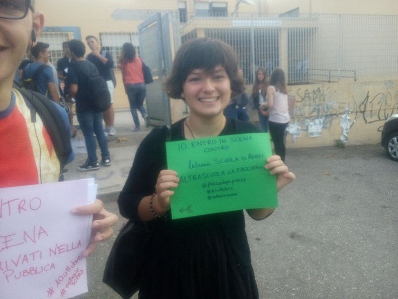 Il Coordinatore regionale dell'Uds Sardegna Giacomo Cossu dichiara: "Il primo giorno di scuola è anche il primo giorno in cui manifestiamo il nostro dissenso nei confronti del Governo. Il Piano Scuola é un insieme di annunci che non intacca i veri problemi della Scuola italiana: non contiene nessuna misura di contrasto alla dispersione scolastica, che in Sardegna é arrivata al record del 27%. Renzi si preoccupa di far entrare i capitali privati nelle scuole pubbliche anziché interrompere i finanziamenti diretti e indiretti alle Scuole paritarie."