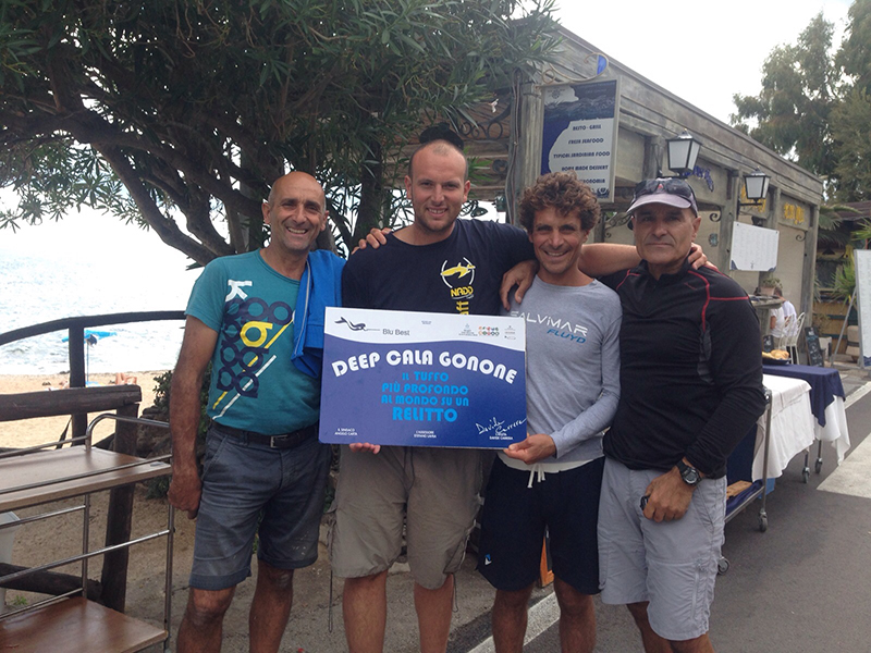L’atleta, supportato dal team della Blù Best si è immerso nelle acque di Cala Cartoe, a sei miglia da Cala Gonone, per discendere verticalmente verso il relitto del piroscafo Ugo Bassi, affondato da un sommergibile inglese durante il secondo conflitto mondiale.