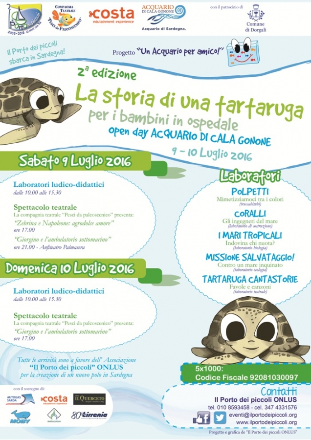 Dalla collaborazione tra l’Acquario di Cala Gonone e Il Porto dei piccoli, legato da sempre a Costa Edutainment, scaturisce questa manifestazione all’insegna del divertimento e della solidarietà, per sensibilizzare attraverso il gioco al rispetto della natura e per parlare con leggerezza anche ai più piccoli di cura e guarigione.
