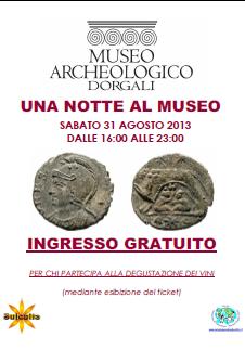 Oltre ai momenti di intrattenimento musicale e di canti popolari sardi, la Rassegna “Sulcalis” quest’anno offre ai degustatori l’opportunità di visitare gratuitamente, per tutta la serata di sabato 31 Agosto, fino alle ore 23, il Museo Archeologico. Su iniziativa dell’Amministrazione Comunale e del Direttore del Museo, Dr Fabrizio Delussu che svolgerà anche il ruolo di autorevole guida, sarà possibile conoscere l’importante struttura mussale di Dorgali ed ammirare in particolare preziosi reperti di età nuragica e di epoca romana legati alla produzione del vino. Nel Museo di Dorgali sono esposte infatti diverse brocche askoidi del tempo dei nuraghi, anfore vinarie romane e vari reperti legati alla produzione vinicola, che nel territorio dorgalese era diffusa e di notevole importanza da tempi molto antichi.