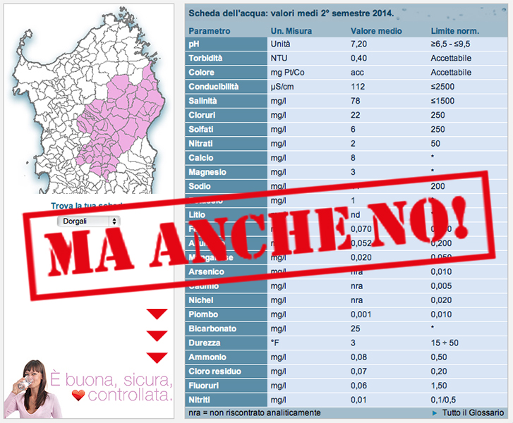 Certo, un impegno piuttosto caro per le tasche dei sardi che, spesso alle tariffe alte, sommano spese di approvvigionamento “fai da te” a causa della non potabilità del prodotto distribuito. Eppure - secondo l’art. 13 del provvedimento n. 26/75 del CIP (Comitato Interministeriale Prezzi) applicabile in quanto non derogato dal D.L. n. 66/89 - in caso di fornitura di acqua non potabile Abbanoa dovrebbe decurtare la tariffa del cinquanta per cento, come prevede la legge, ma invece si continua a far pagare il servizio a prezzo pieno.
