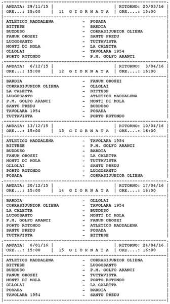 16 le squadre impegnate nel girone D del Campionato di 1^ Categoria che avrà inizio il 20 settembre 2015 e proseguirà secondo il calendario di seguito: