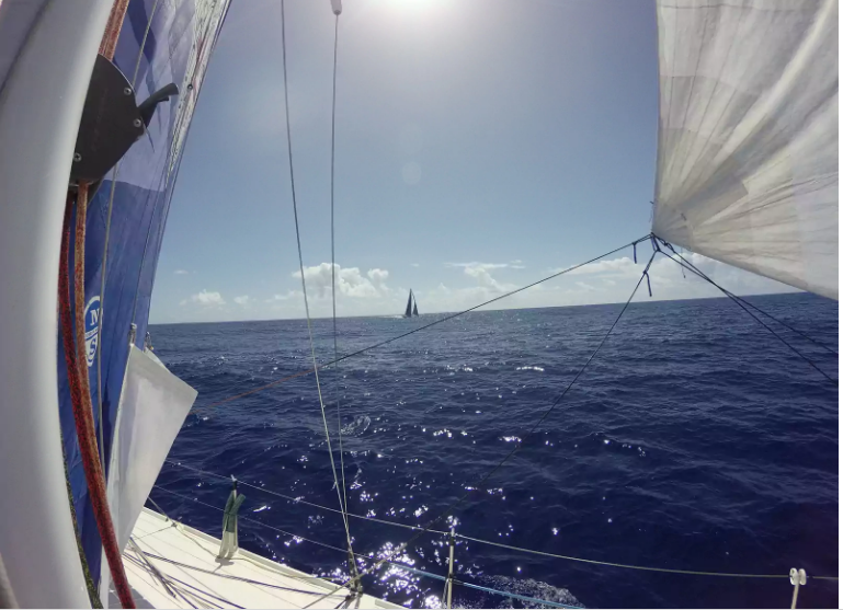 Ci siamo parlati per radio. Jean mi ha detto che mi vedeva già da un po' all'AIS (strumento che individua le altre imbarcazioni), io ancora no perché il mio albero e quindi l'antenna sono molto più bassi. Abbiamo parlato della meteo e del mio giro del mondo. "Ci faremo compagnia stanotte" mi ha detto. Il vento è calato quasi completamente e abbiamo battagliato tutta notte per cogliere il refolo fantasma che gioca a nascondino...